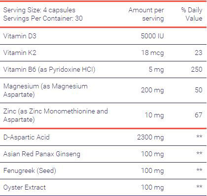 The other active ingredients in TestoFuel are: Ginseng, Vitamin B6, Vitamin K2 and Zinc.