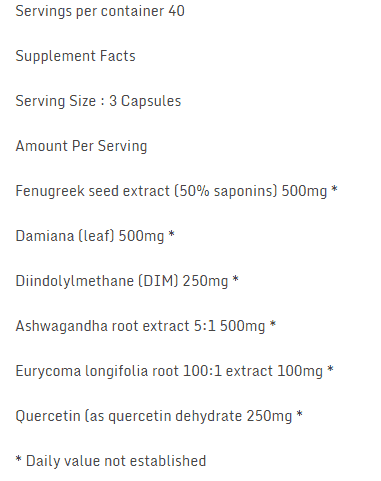 These herbs reduce cortisol and improve testosterone. However we struggled to find any real science backing their use. Meaning this blend isn’t very exciting from a scientific perspective and you can get things like DIM from Broccoli, Kale etc.